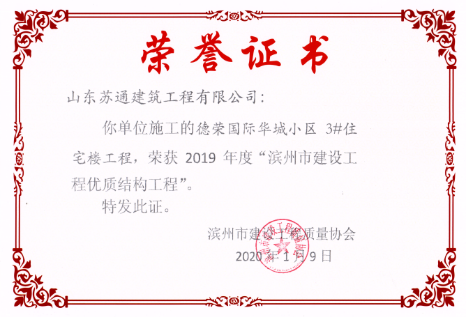 山東蘇通建筑工程有限公司,創(chuàng)建于2009年8月。目前擁有房屋建筑工程施工總承包壹級、市政公用工程施工總承包叁級、水利水電工程施工總承包叁級資質,同時還具有建筑裝修裝飾工程專業(yè)承包貳級、消防設施工程專業(yè)承包貳級、鋼結構工程專業(yè)承包叁級、建筑機電安裝工程專業(yè)承包叁級等專業(yè)承包資質。 公司總部坐落于山東省濱州市濱城區(qū)黃河十二路877號,現(xiàn)有辦公面積約2000平方米,機構設黨支部工會辦公室、總經理辦公室、綜合辦公室、工程管理部、經營預算部、資產財務部、材料設備部、運行管理部、法律事務部等多個職能部門。公司管理體系已經通過了GB/T 19001及GB/T 50430質量管理體系、GB/T 24001環(huán)境管理體系(EMS)、GB/T 28001職業(yè)健康安全管理體系(OHSMS)等體系的認證。 公司承建完工了濱州市建大教師之家、建大清怡苑、香格里拉水岸綠城住宅小區(qū)、雙泰建大城、曲阜崇德公館住宅小區(qū)、北海新區(qū)御景藍灣住宅小區(qū)、沾化德榮國際華城住宅小區(qū)、惠民橄欖郡住宅小區(qū)等工程項目,目前在建工程項目有:濱州市頤高國際電子商務產業(yè)園住宅小區(qū)項目、濱州市東盛國際項目、高新區(qū)建大中央華府住宅小區(qū)項目、濱州市融匯新里程住宅小區(qū)項目、濱州市建大秦皇壹號住宅小區(qū)項目、濱州市森林花...